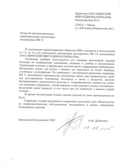 С преимуществами ингалятора кислородного можно ознакомиться в статье (по ссылке) "Ингалятор кислородный ИК 33 – незаменимый помощник врача при оказании неотложной медицинской помощи.", а также с учетом ниже приведенных отзывов.